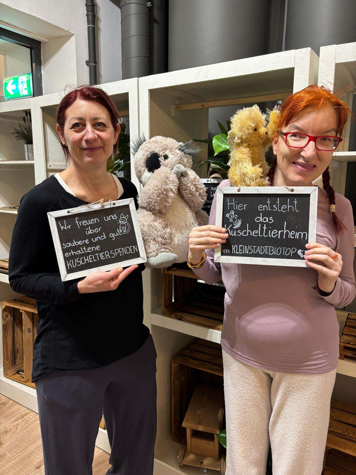 Die gespendeten Kuscheltiere werden zu fairen Preisen* im KLEINSTADTBIOTOP weiter verkauft.
